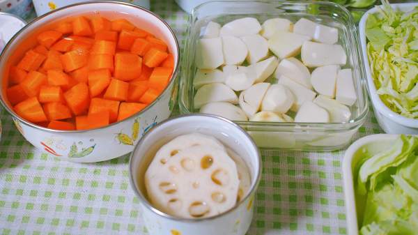 Các loại củ như khoai, củ sen… chị Hoa thường gọt vỏ, cắt khúc xong cho vào hộp, đổ ngập nước sẽ giúp bảo quản tươi lâu hơn. Để ngăn mát sử dụng được 5 ngày. Tương tự với các loại giá đỗ hay đậu phụ, mua về cho vào hộp, đổ ngập nước sẽ giữ tươi lâu hơn, sử dụng trong 3 ngày.