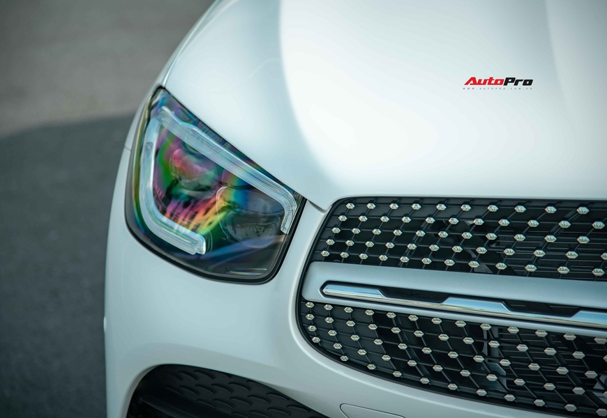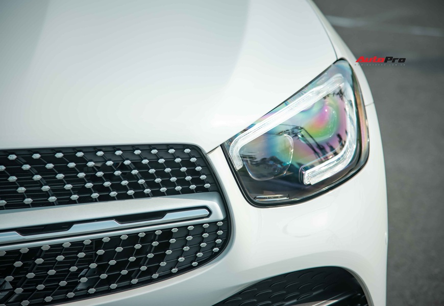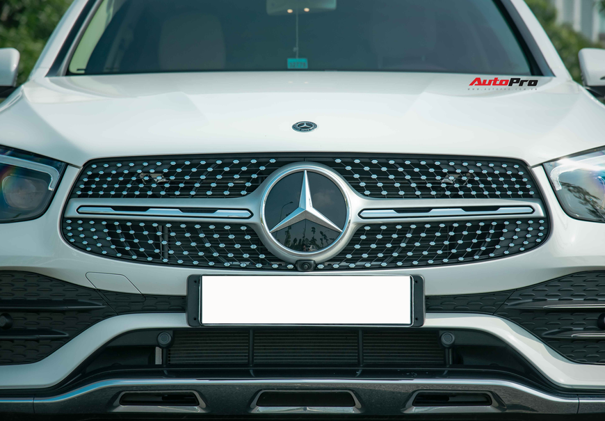 Chiếc Mercedes-Benz GLC 300 4Matic thuộc phiên bản lắp ráp trong nước và được đăng ký lần đầu vào tháng 7/2020. Với quãng đường 1.459 km, toàn bộ phần ngoại thất của chiếc xe vẫn giữ được độ hoàn thiện như mới. Nước sơn trắng kem còn bóng, các chi tiết mạ chrome trên lướt tản nhiệt và nẹp cửa vẫn sáng.