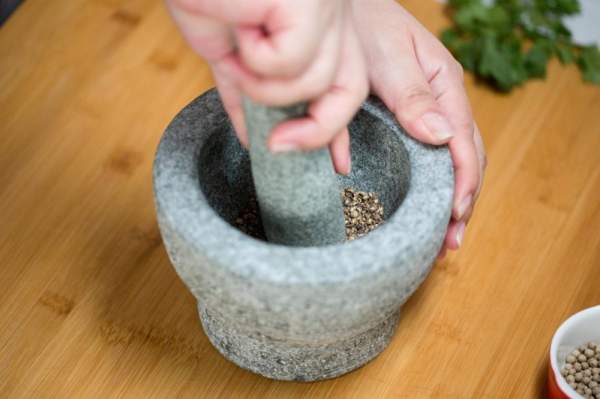 Bước 2: Cho tỏi và rau mùi vào đập dập và đặt sang một bên.