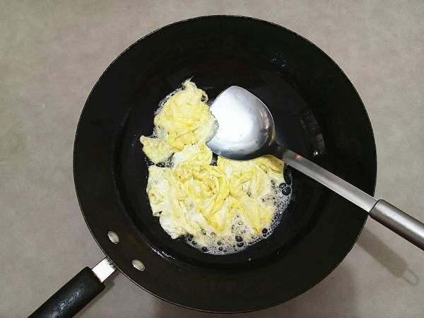 Trứng đánh tan, cho vào chảo xào chín, để riêng.
