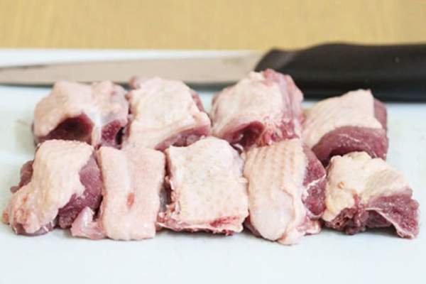 Tiếp đến bạn chặt thịt vịt thành những miếng to để khi nấu lên thịt không bị quắt lại. Sau đó bạn đem thịt vịt ướp với các gia vị gồm tỏi băm, gừng băm và gia vị cơ bản trong khoảng 1 tiếng. Sau khi thịt vịt đã ngấm vị, bạn rán thịt vịt trên lửa to hoặc có thể sử dụng nồi chiên không dầu 200 độ 5 phút cho ra bớt mỡ.