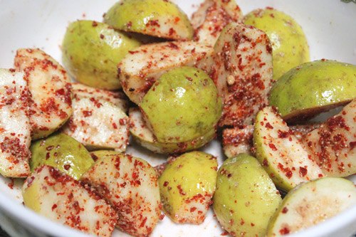 - Sau đó cho ổi vào âu lớn, trộn bột xí muội vào ổi.