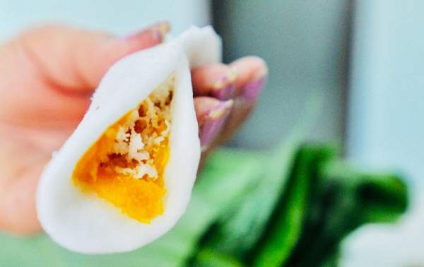 Tiếp đó luộc chín bí, khoai, đậu..., giã nhuyễn và trộn với đường cát để làm nhân. Tùy vào sự sáng tạo, có thể dùng nước ép từ hạt mồng tơi để tạo thêm màu sắc cho nhân bánh. Để bánh có vị thơm, ngọt hơn có thể dùng cơm dừa xay rắc lên nhân.