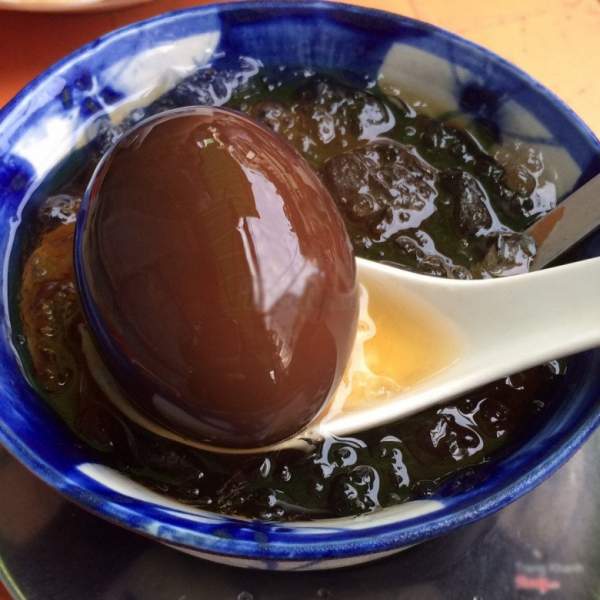 Vượt qua được nỗi sợ tanh thì đây là một món chè ngon giúp thanh nhiệt giải độc những ngày nắng nóng, thu hút người thưởng thức ở vị bùi bùi của trứng gà. Cái ngon của món chè nằm trong phần nước đen nâu khó tả ấy. Thứ nước trà tàu sóng sánh màu đen có vị ngọt thanh, pha chút đắng nhẹ, hương thơm thoang thoảng, uống đến đâu mát đến đó. Còn trứng gà, không những không tanh mà còn thơm ngon với hương trà ngấm vào trong, mềm và ngọt nhẹ rất dễ ăn.