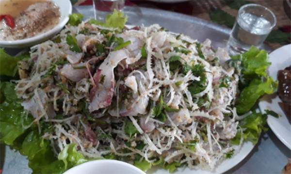 Gỏi cá bỗng là món nổi tiếng ở các nhà hàng, khách sạn, được du khách yêu thích khi đến Yên Bái