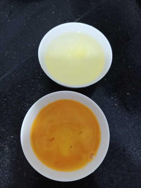 - Tách 5 trứng vịt lòng đỏ lòng trắng riêng (tùy theo trái bầu lớn nhỏ mà cho bao nhiêu trứng. Trái bầu này làm 5 quả trứng)