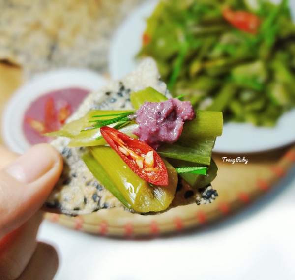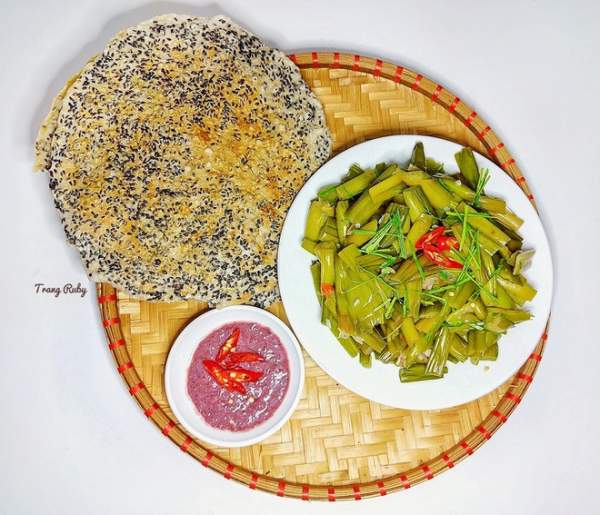 Dọc mùng muối chua ăn kèm bánh đa, mắm tôm là món ăn được người dân xứ Nghệ yêu thích (Ảnh: Trang Ruby).