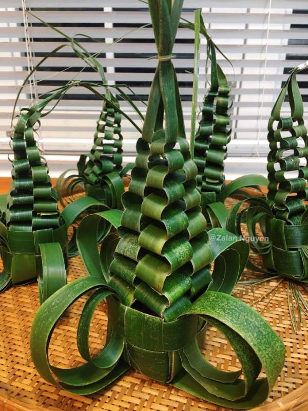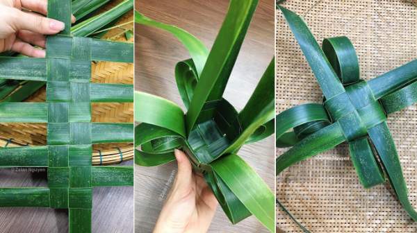 Lá dừa rửa sạch, lau khô rồi dùng để đan lầu. Một chiếc lầu cần năm chiếc lá dừa, chẻ đôi là 10 sợi, đan phần đáy trước rồi tới bốn cạnh xung quanh.