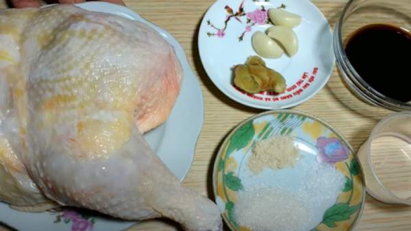 -Pha nước chấm: Lấy phần nước hấp gà cho thêm chút xì dầu, tỏi ớt băm, khuấy đều.