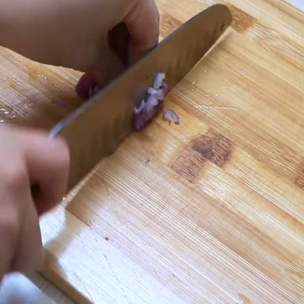 Bạn rửa mộc nhĩ với nước sạch. Sau đó ngâm trong nước lạnh khoảng 3-5 phút để mộc nhĩ nở mềm, rồi rửa sạch lại với nước, cắt bỏ gốc và tiến hành băm nhuyễn. Hành lá cắt bỏ gốc và những lá bị dập sau đó thái nhỏ. Lột vỏ hành tím, rửa sạch, băm nhỏ. Ớt sừng rửa sạch và cắt lát xéo.