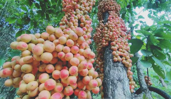Dâu da chín mọng, trĩu trịt trên những thân cây sần sùi.