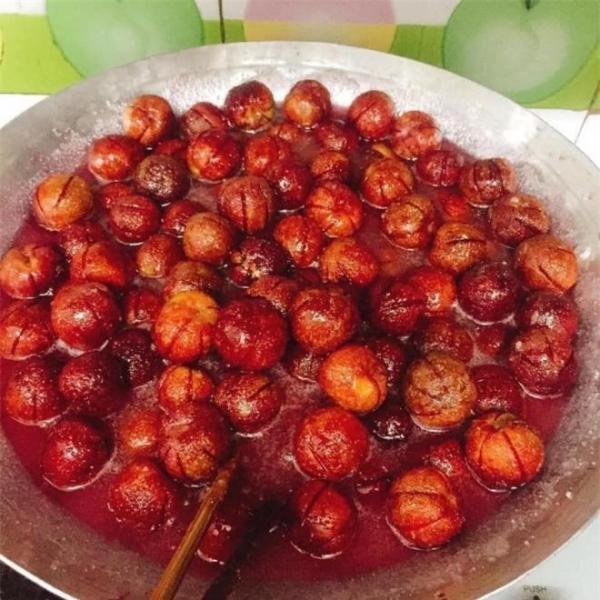 - Sau 15-20 phút đun mận ngập đường nở căng ra.