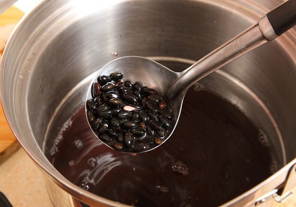 Bước 3: Đun sôi nồi đỗ đen, thỉnh thoảng lấy muôi hớt bọt. Sau đó, vặn nhỏ lửa ninh cho đến khi hạt đỗ mềm.