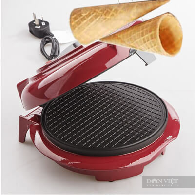 - Nhanh thay lấy bánh ra khỏi máy, dùng thanh tròn dài đi kèm máy cuộn bánh hoặc khuôn hình ốc cuộn ốc quế.