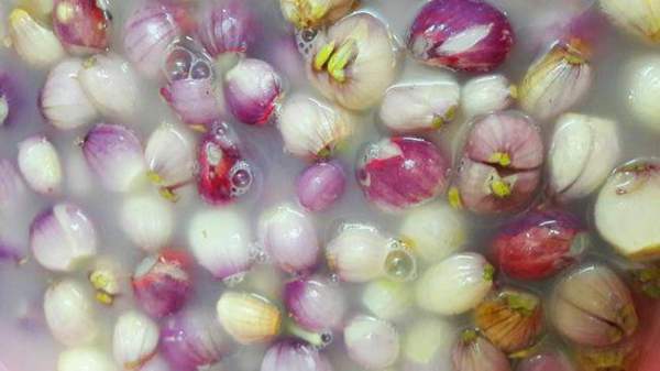 Sau thời gian này, hành đã bớt hăng và lên men. Rửa lại hành bằng nước đun sôi để nguội rồi chuẩn bị muối nhé!