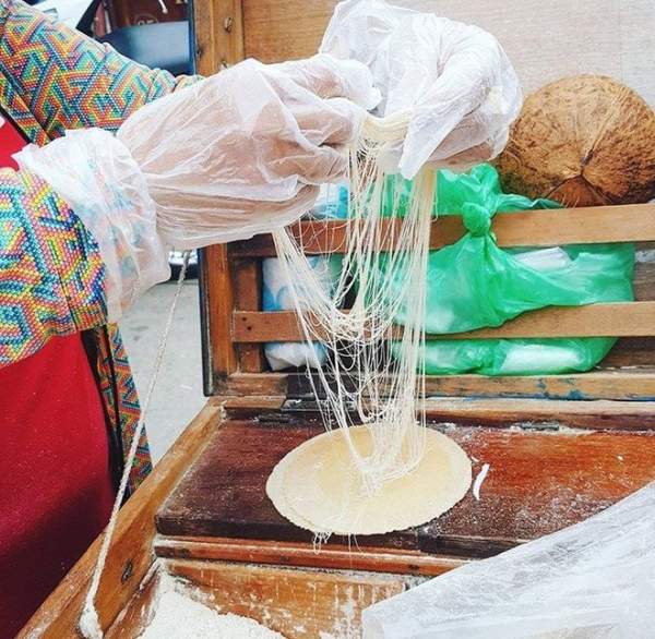 Thời học sinh ai mà chưa từng trải qua cảm giác đợi giờ ra chơi, luồng tay qua cổng trường ngoắt cô chú bán kẹo chỉ, có hôm phải chờ xe kẹo chỉ đi ngang qua để vẫy tay mua. Tụi nhỏ đặc biệt rất thích quan sát cách các cô chú biến từ một khúc kẹo mềm và dày, nhúng vô bột mì rồi hô biến thành nhiều sợi nhỏ mịn như chỉ tơ. Sau đấy, các sợi này được để lên bánh tráng giấy, thêm tí dừa nạo và sữa đặc. Hương vị vừa ngọt vừa béo vừa giòn rất cuốn.