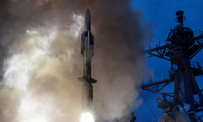 Tên lửa SM-6 phóng từ tàu chiến Mỹ trong đợt thử nghiệm năm 2014. Ảnh: US Navy