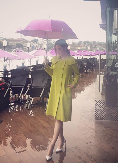 Á hậu Hoàng Anh có xu hướng diện đồ dài tay với phong cách đơn sắc.