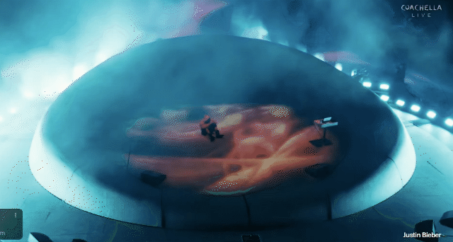 Những bản hit đình đám như Baby, Sorry, That Should Be Me hay Never Say Never được Justin Bieber tìm trực tiếp trên YouTube, bật lại video cũ và hát đè như một màn “karaoke hoài niệm”. Justin Bieber còn mở lại các video "meme" của chính mình để tự reaction trên sân khấu. Xem Coachella mà ngỡ như trong phòng thu, giữa nam ca sĩ và khán giả gần như không còn khoảng cách.