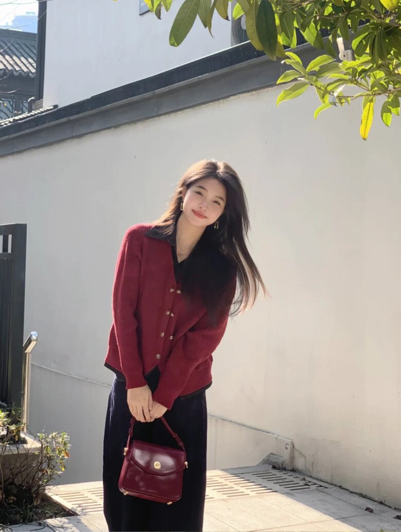 Mặc dù nó có thể mang đến vẻ sang trọng, quý phái, nhưng nếu không khéo léo trong cách phối đồ, đỏ đậm rất dễ khiến người mặc trở nên già dặn và thiếu đi vẻ tươi tắn cần có trong ngày Tết.