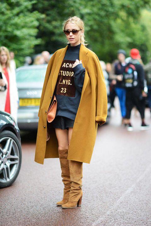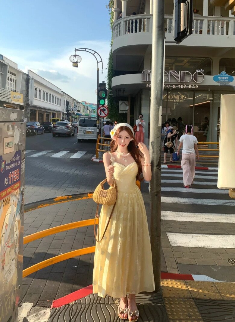 Một chiếc váy vàng mù tạt phối cùng áo khoác trắng hoặc phụ kiện tươi sáng sẽ giúp bạn nổi bật mà không lo bị “dìm” da.