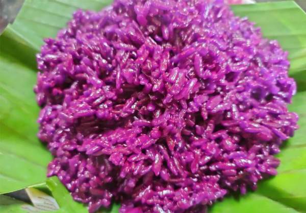 Xôi cẩm xứ Lạng có màu tím trong đẹp mắt nhờ nước luộc lá cẩm nhiều nhất vào tầm tháng tư, tháng năm.