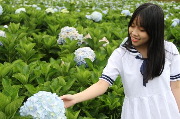 Rất nhiều bạn trẻ lựa chọn khám phá cánh đồng hoa cẩm tú cầu để lưu giữ những khoảng khắc ngọt ngào