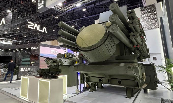 Tổ hợp phòng không Pantsir-SMD-E tại triển lãm quốc phòng ở Abu Dhabi hôm 17/2. Ảnh: TASS