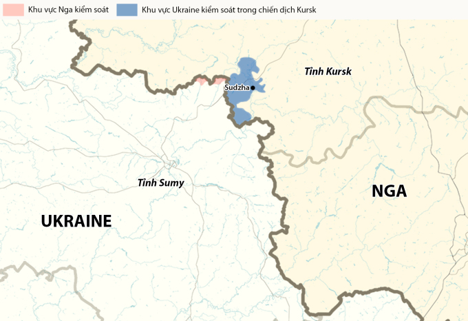 Vị trí thị trấn Sudzha, tỉnh Kursk, Nga. Đồ họa: RYV