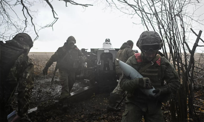 Pháo binh Nga chuẩn bị tập kích vị trí Ukraine tại tỉnh Kursk tháng 11/2024. Ảnh: BQP Nga