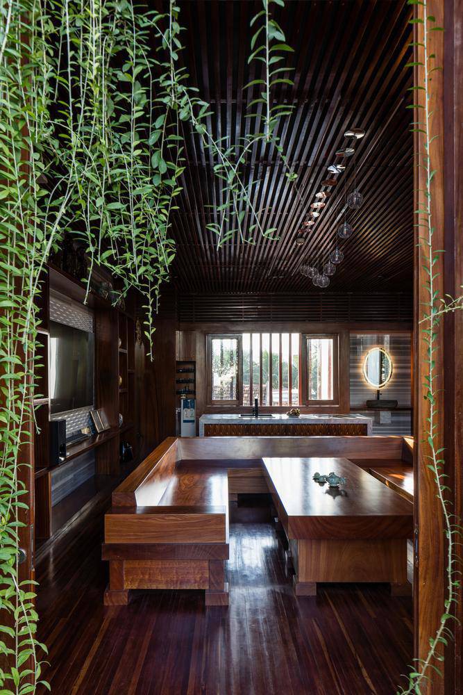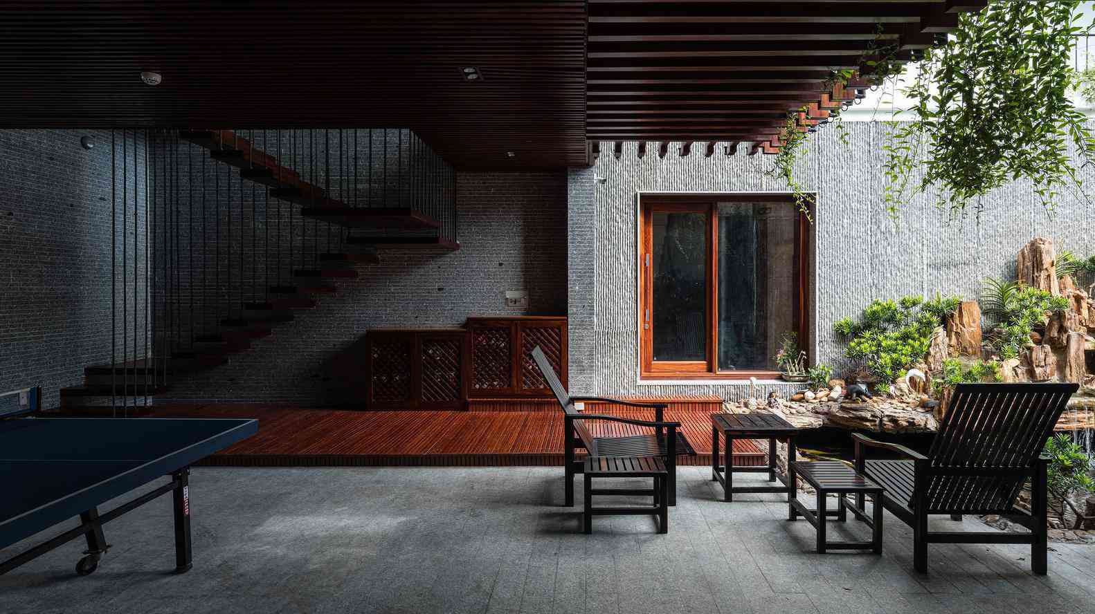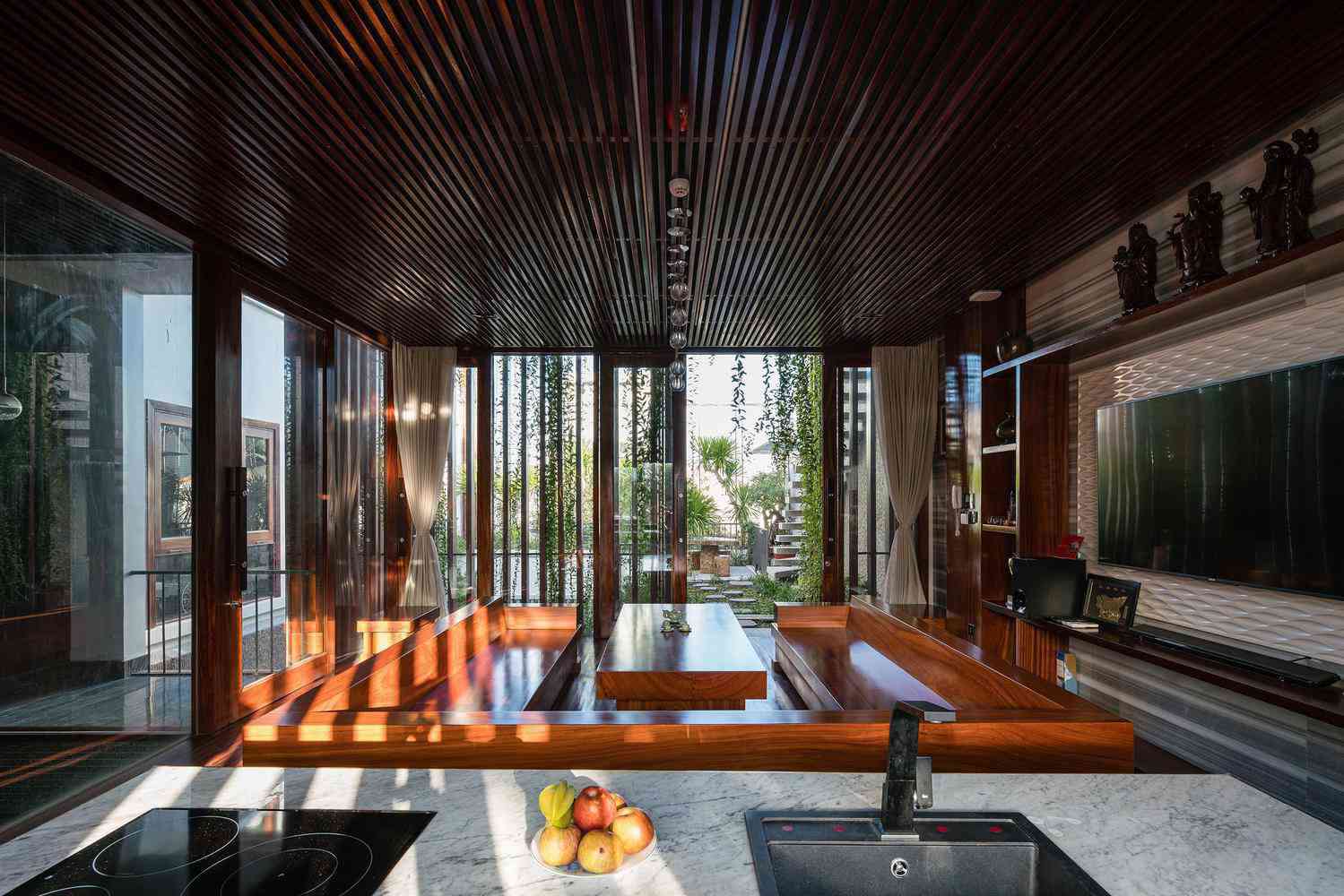 Đồ nội thất trong nhà ưu tiên sử dụng chất liệu gỗ để đem lại cảm giác ấm cúng và thân thiện với không gian vườn.