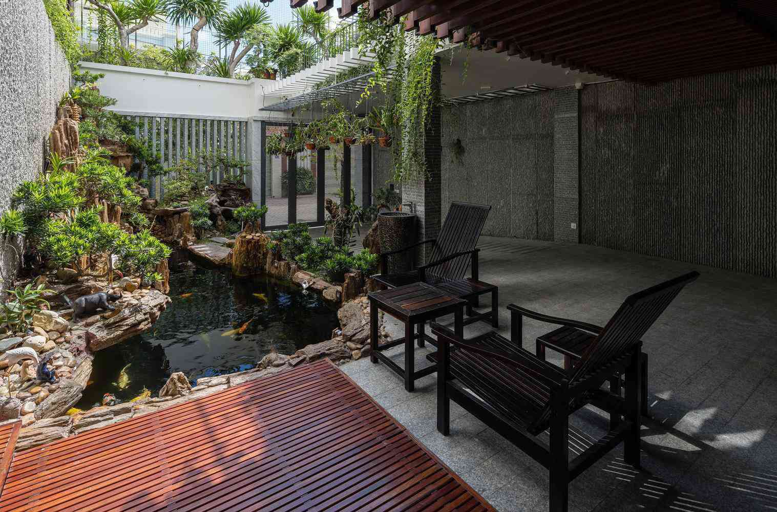 Mọi không gian trong nhà đều có cây xanh bao phủ.