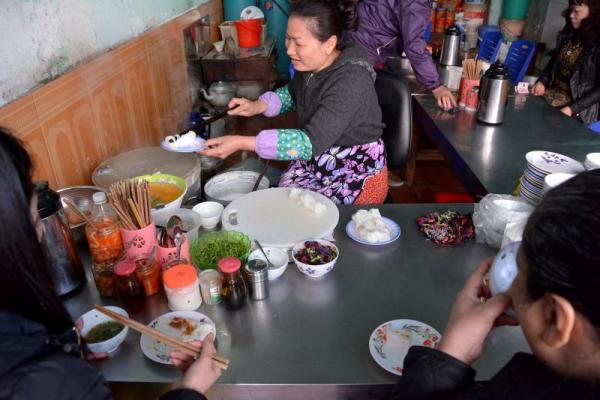 Hàng bánh nằm bên hông chợ, bình dân như chính món bánh mà “ai cũng phải thử” khi đến Lạng Sơn. Chị bán hàng kể nhà mình đã làm nghề tráng bánh đến 3 đời, nhưng cũng không rõ bánh cuốn trứng được xuất phát từ đâu, món người Tày hay món người Hoa.