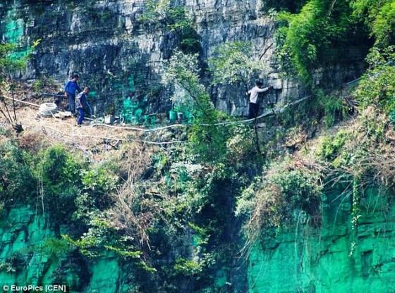 Ông Yang Zhigang đã thuê nhóm công nhân phun sơn lên vách núi cao 900m.