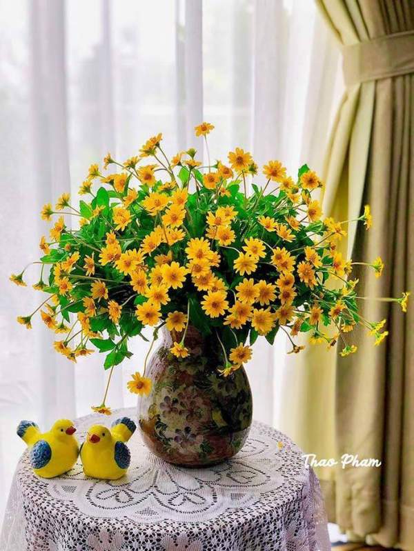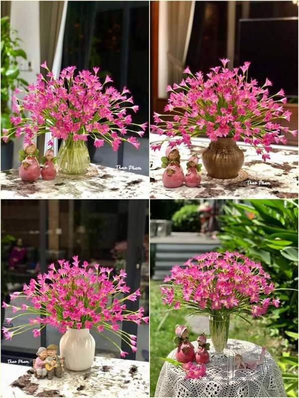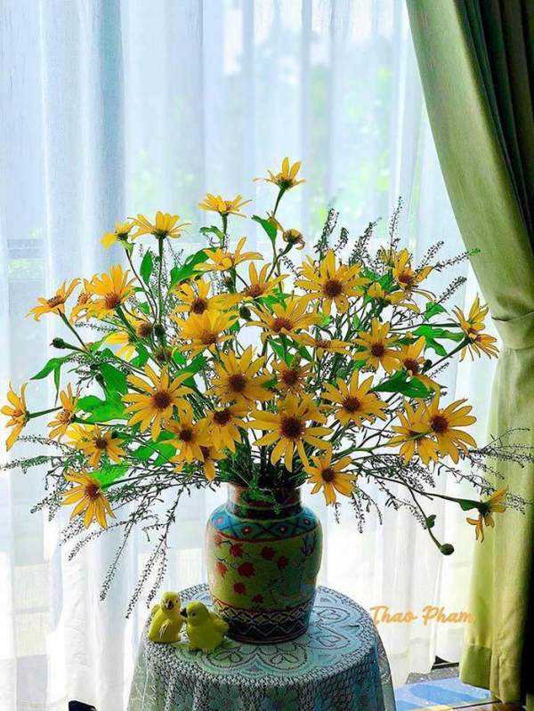 Chị vui vẻ: “Những lúc rảnh rỗi, mình thích đi lang thang trên những con đường làng, bờ đê hay xóm nhỏ ven sông. Chỉ cần vô tình bắt gặp bất kỳ loài hoa dại nào, mình lập tức hái mang về nhà và sáng tạo cách cắm hoa. Mình rất vui khi sở hữu những bình hoa độc, lạ, hiếm ai có được”.