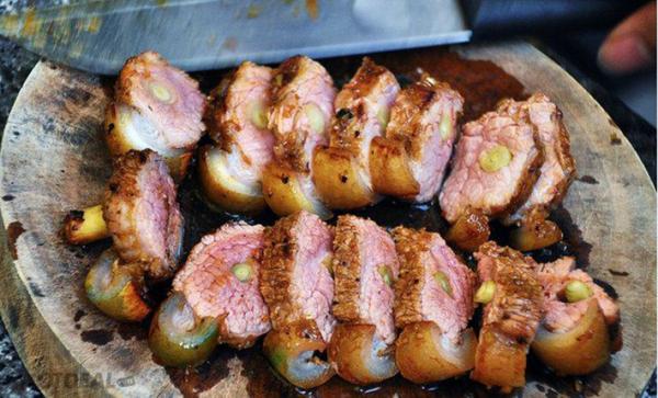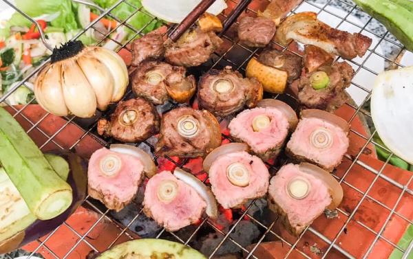 Khi xắt miếng thịt ra. mùi thơm kích thích vị giác sẽ bắt đầu cho một bữa ăn tuyệt hảo. Món nướng lụi sã là một trong những sáng tạo đặc biệt với hương vị hấp dẫn.