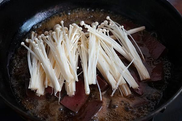 Tiếp tục cho nấm kim châm vào, nêm nếm gia vị, đun thêm 2 phút.