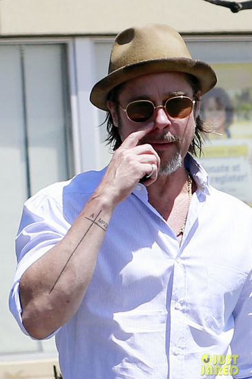 Nam diễn viên để lộ hình xăm trên tay, dường như là chữ cái đầu tên của Angelina Jolie và các con.
