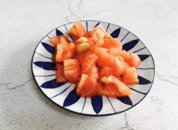 Cà chua rửa sạch, bỏ vỏ, bổ thành các miếng nhỏ.