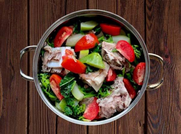 Xào xương thủ đã ướp thật kĩ rồi cho nước sôi vào ninh, lúc đầu lửa to, bắt đầu sôi thì cho lửa vừa hớt kĩ bọt. Ninh dừ khoảng 70% thì cho đu đủ và cà chua vào ninh tiếp đến độ nhừ mong muốn. Càng dừ thì đu đủ càng bớt đắng. Nêm nếm gia vị rồi vớt xương và đu đủ ra mâm hoặc đĩa to. Nước để bát riêng ăn nóng. Xương thủ sẽ có mùi thơm xen với vị đắng nhẹ của lá đu đủ vị ngọt của quả đu đủ tạo nên một món ăn ngon, dễ làm nguyên liệu lại rất rẻ và sẵn có.