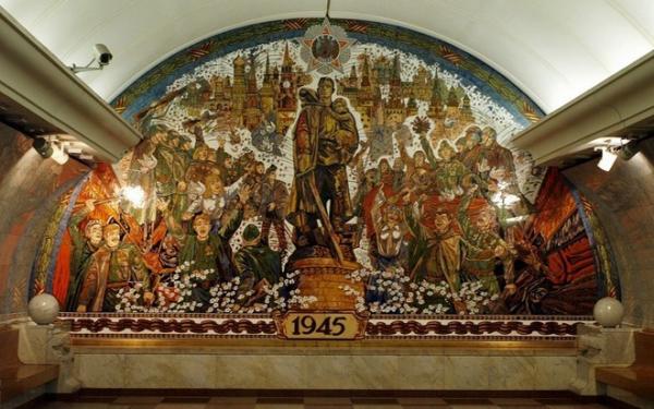 Ga công viên Pobedy lát đã sáng loáng như mặt gương, phản chiếu mái vòm tráng lệ, đồ sộ.