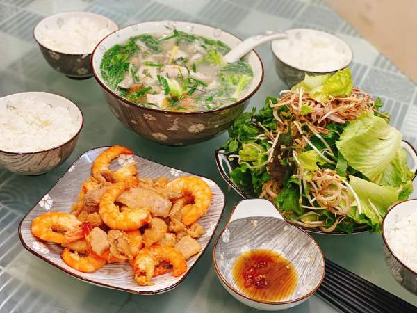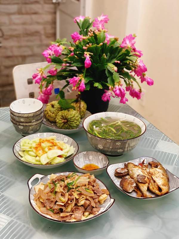 Mâm cơm lúc nào cũng phải có đủ món canh, món mặn và thêm rau. Nhà 3 người lớn, 2 trẻ con nhưng khẩu vị lại phong phú: mẹ chồng không ăn tôm, nội tạng và thịt mỡ; con gái và chồng ghét cá thích thịt. Trong khi đó mình ngược lại với số đông thích ăn cá.
