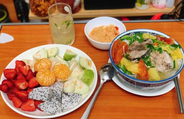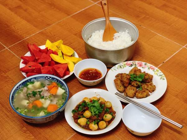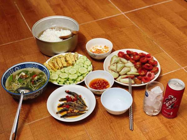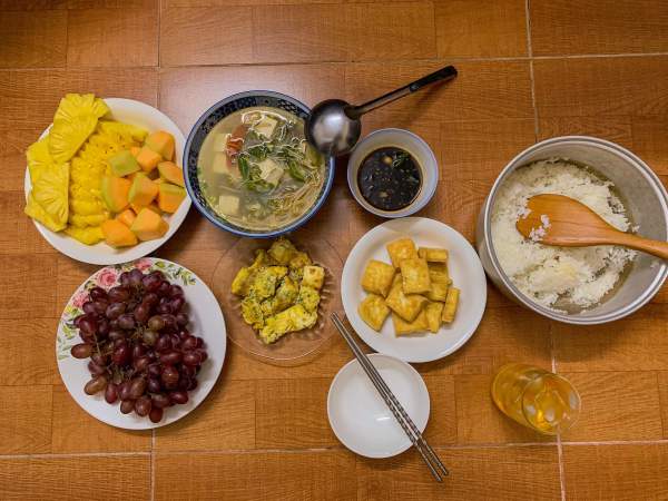 Độc thân và sống xa quê nhưng anh Hoan luôn tự chuẩn bị cho mình những mâm cơm đậm chất gia đình.