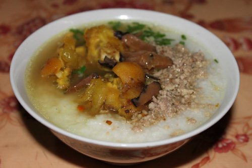 Không chỉ là món ăn đơn thuần, bát cháo còn là một vị thuốc giải cảm, chính vì thế mà các quán bán cháo ấu tẩu thường chỉ mở vào ban đêm khi tiết trời chuyển sang se lạnh. Cháo nấu từ nếp, tẻ thơm, củ ấu tẩu, nước hầm chân giò, khi ăn rắc thêm các loại rau thơm và chút thịt nạc băm nhỏ. Cháo có vị đắng nên còn được gọi là cháo đắng. Giữa đêm lạnh, ngồi nhẩn nha từng thìa cháo đắng bên cạnh bếp lửa bập bùng, cũng là một cách khám phá thêm về văn hóa và ẩm thực của mảnh đất Hà Giang. Ảnh: Viettrip