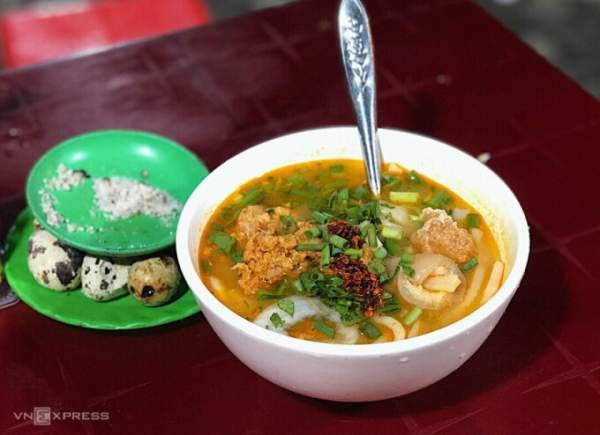 Có cách làm tương tự như bánh canh chả cá ở các tỉnh thành ven biển miền Trung, bánh canh hẹ tại Phú Yên tạo điểm nhấn riêng với màu xanh mướt của hẹ cắt nhỏ, có mùi thơm, không hăng như nhiều người nghĩ. Sợi bánh canh trong tô nhỏ và mềm, nước dùng thanh ngọt từ cá biển, thêm trứng cút và chả cá chiên vàng hấp dẫn. Ảnh: @khanhnguyen_64/Instagram