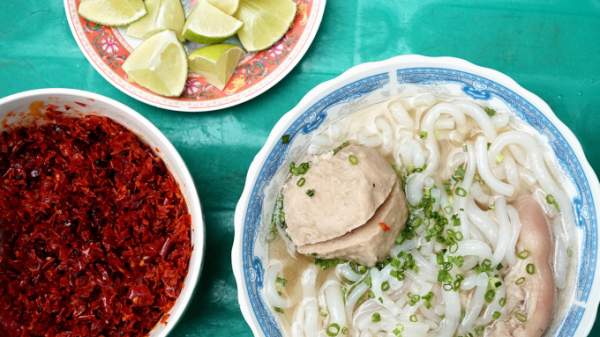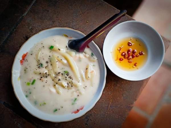 Bánh canh chả cá nổi tiếng ở các tỉnh duyên hải Nam Trung Bộ như Bình Thuận, Ninh Thuận, Khánh Hòa... Món ăn có vị thơm của nước lèo nấu từ xương và cá biển nhỏ, vị ngọt thanh vừa miệng. Chả cá làm từ thịt cá chuồn, cá mối, cá nhồng, cá thu... giã nhuyễn và tẩm ướp gia vị, sau đó nặn thành viên tròn hoặc ép thành mảng mỏng rồi chiên vàng hay hấp chín. Món ăn bài trí đẹp mắt, dùng khi nóng hổi, thơm ngon với hành ngò, tiêu xay. Ảnh: @uyenphuong_uyenphuong/Instagram