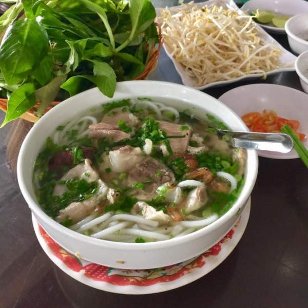 Bánh canh Trảng Bàng là thương hiệu nổi tiếng ở Tây Ninh. Bánh có sợi trắng làm từ bột gạo nàng thơm, nhào kỹ và đem hấp chín trước khi ép thành những cọng bánh tròn dài. Tô bánh canh đặc trưng với giò heo hầm mềm, thịt nạc xắt miếng, huyết, đôi khi có thêm lòng heo, hòa quyện trong nước dùng đậm đà từ xương. Món ăn dùng nóng với rau giá tươi, thêm hành lá cắt nhỏ và tiêu xay cay nồng, hành phi thơm bên trên. Ảnh: @lylyngochuong/Instagram
