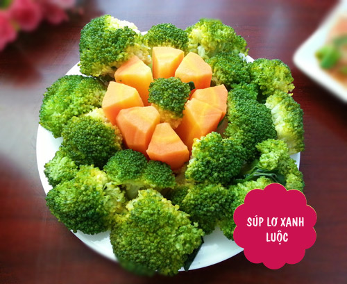 Cà rốt gọt vỏ, thái miếng vừa ăn. Súp lơ cắt nhánh, rửa sạch. Nếu bạn thích ăn cà rốt giòn một chút thì cho cà rốt vào luộc cùng súp lơ. Còn nếu bạn muốn ăn cà rốt mềm hơn thì khi nước sôi, nêm một chút bột canh và cho cà rốt vào luộc trước khoẳng 3 phút thì cho súp lơ xanh vào. Đun sôi khoảng 5-6phút thì vớt rau củ ra đĩa. Nêm gia vị vừa miệng vào nước luộc rồi cho ra bát. Nước luộc rất ngon và ngọt.