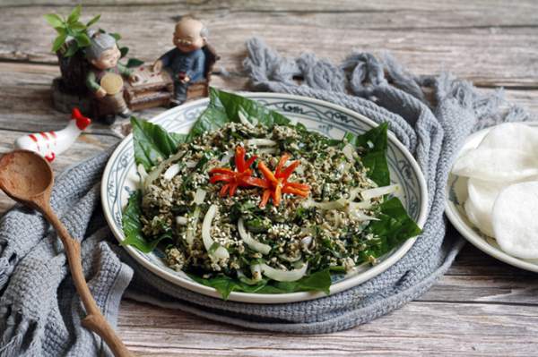 Còn thịt don khi đem xào với lá lốt, hành tây, rắc thêm chút vừng rang ăn kèm phồng tôm rán giòn rất ‘đưa miệng’.