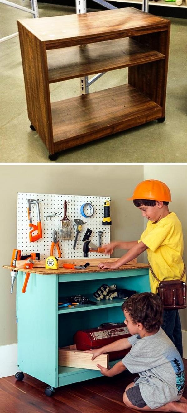 5. Bàn làm việc cũ có thể tạo thành góc cho trẻ thực hành làm các đồ kỹ thuật. Bạn chỉ cần bổ sung thêm giá ghim đồ để bé giữ các dụng cụ của mình.
